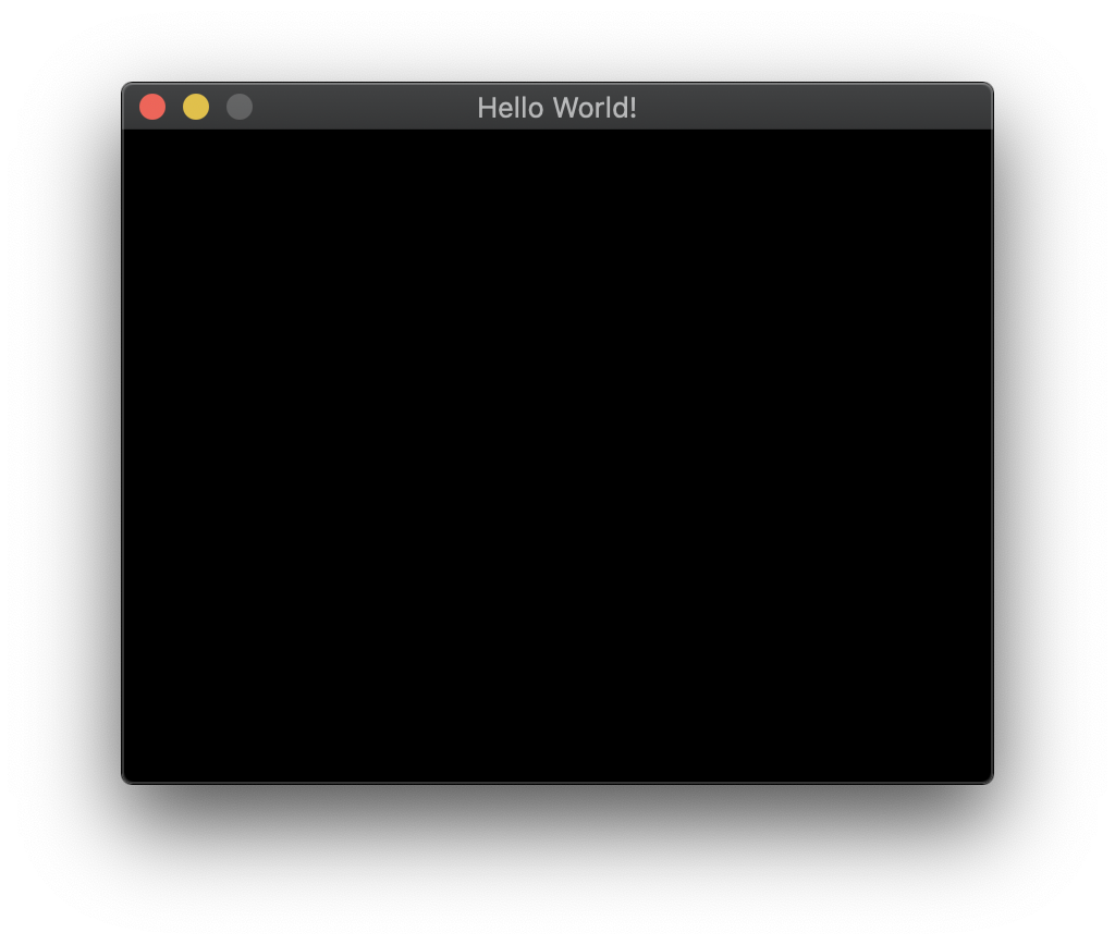 이제 우리 게임앱을 더 확장시켜보자. 이제 다음의 2줄의 코딩을 더해 총 3줄(라인)짜리 코딩이 되었다. 우리는 단지 이 3줄짜리 코드만으로 앱 이름으로 'Hello World' 라는 이름을 갖는 가로세로 400 x 300 픽셀크기의 내용없는 화면만 가진 아주 간단한 프로그램을 만들었다. 이를 Play(실행) 버튼을 눌러 실행시켜보자.